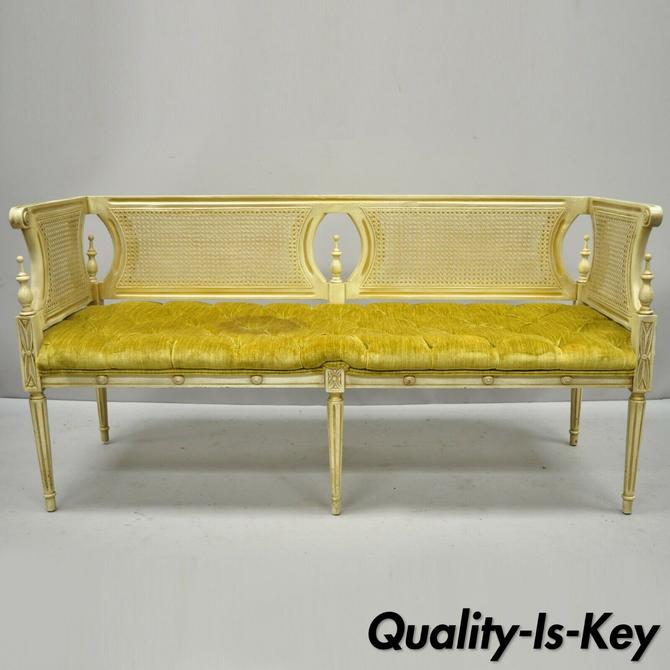 Vintage French Provincial Louis Xvi Style Cane Back Cream Gold