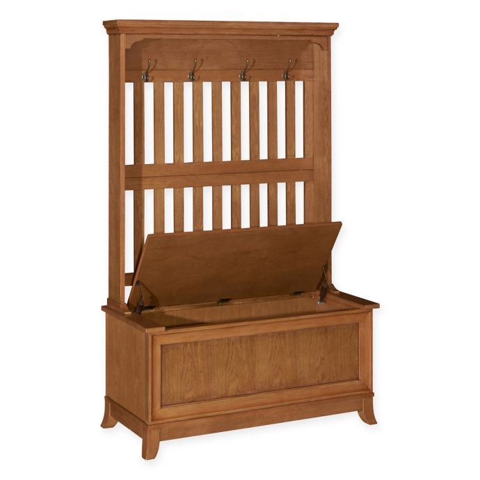 Powell Mission Oak Hall Tree With Storage Bench In Warm Oak Bed Bath Beyond