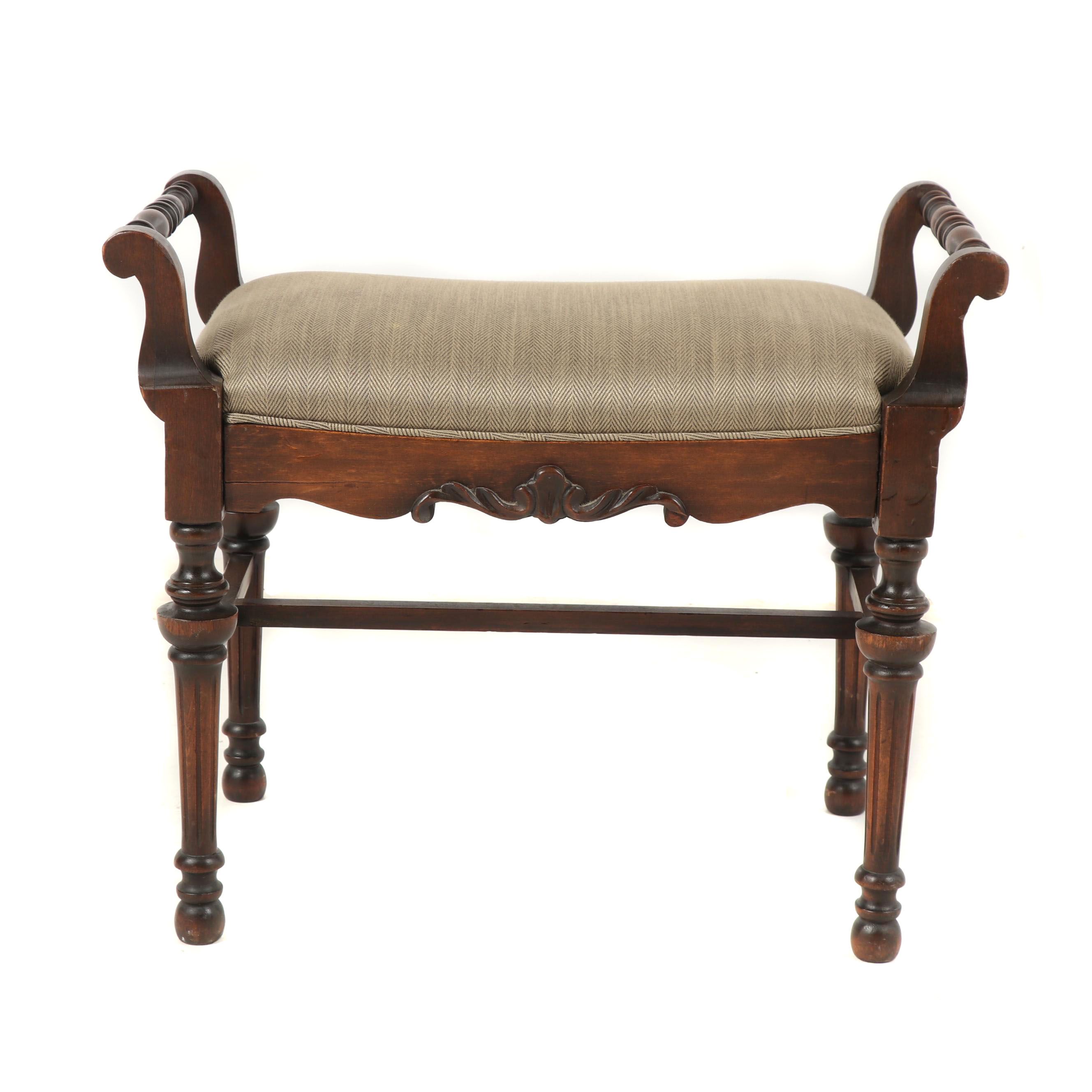 Vintage Upholstered Vanity Bench Ebth