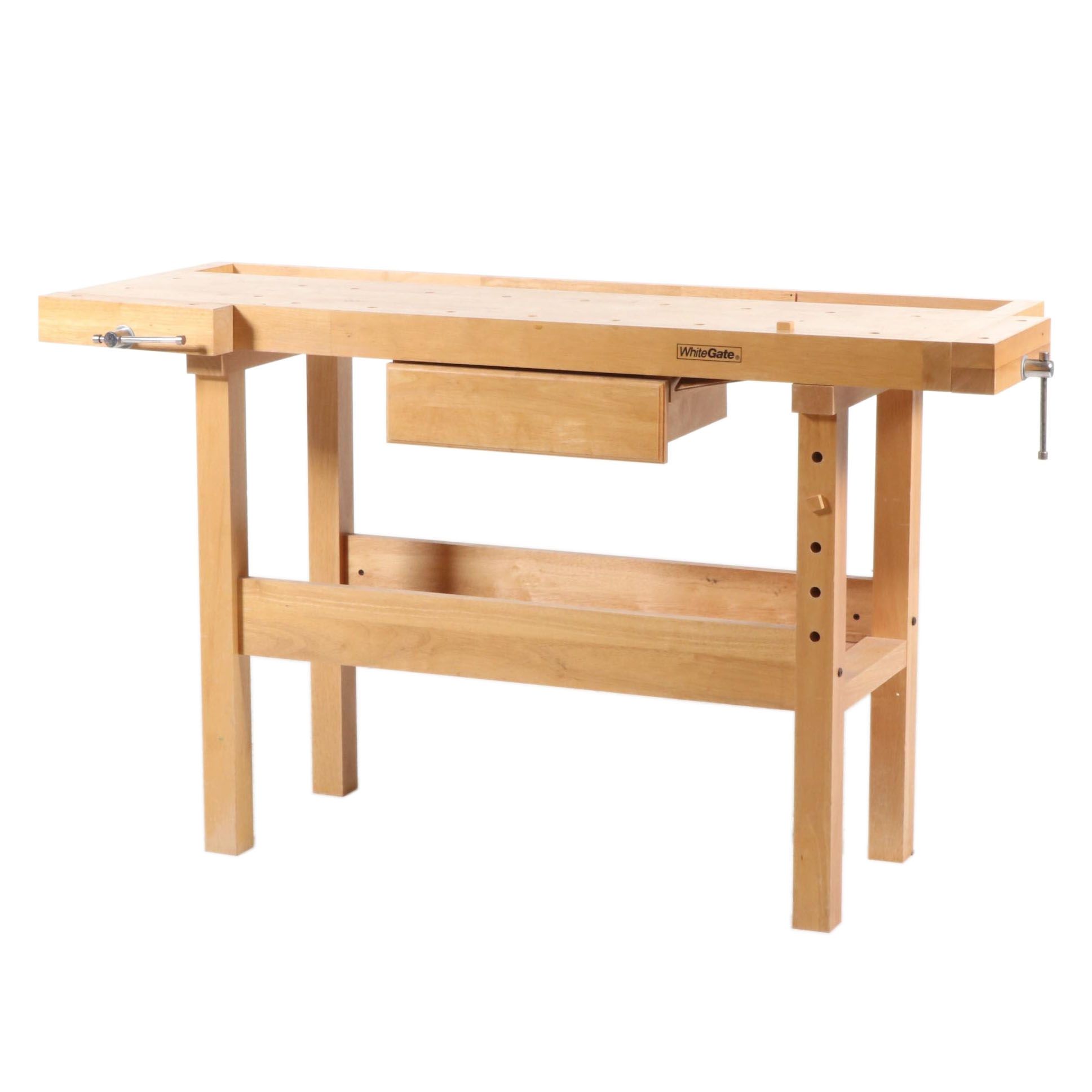 White Gate Wooden Work Bench 1 Drawer Wood Vice Clamp 53 L X17