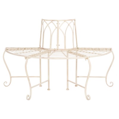 Abia Wrought Iron Outdoor Tree Bench Antique White Safavieh